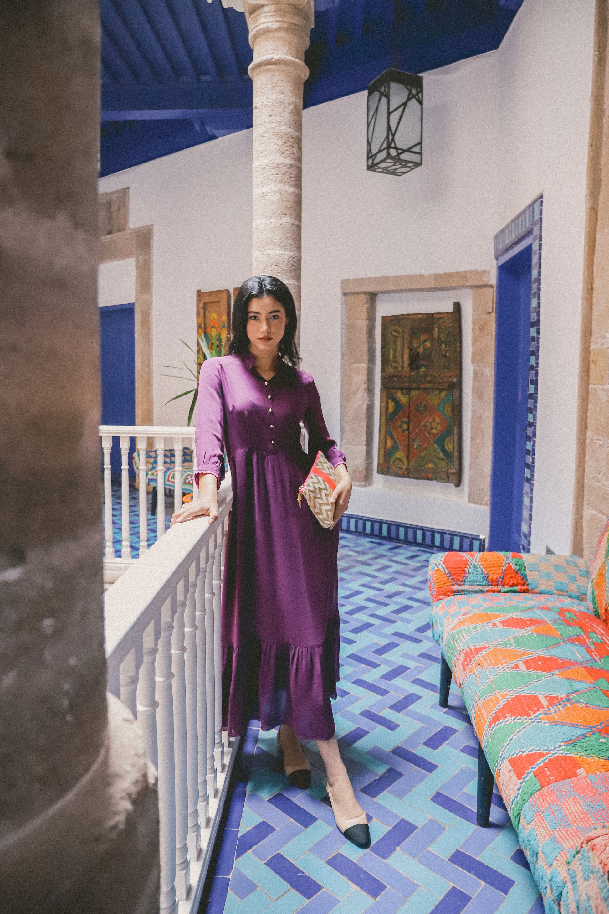 LONGER ANASTASIA DRESS | AUGBERGINE SILK GEORGETTE
