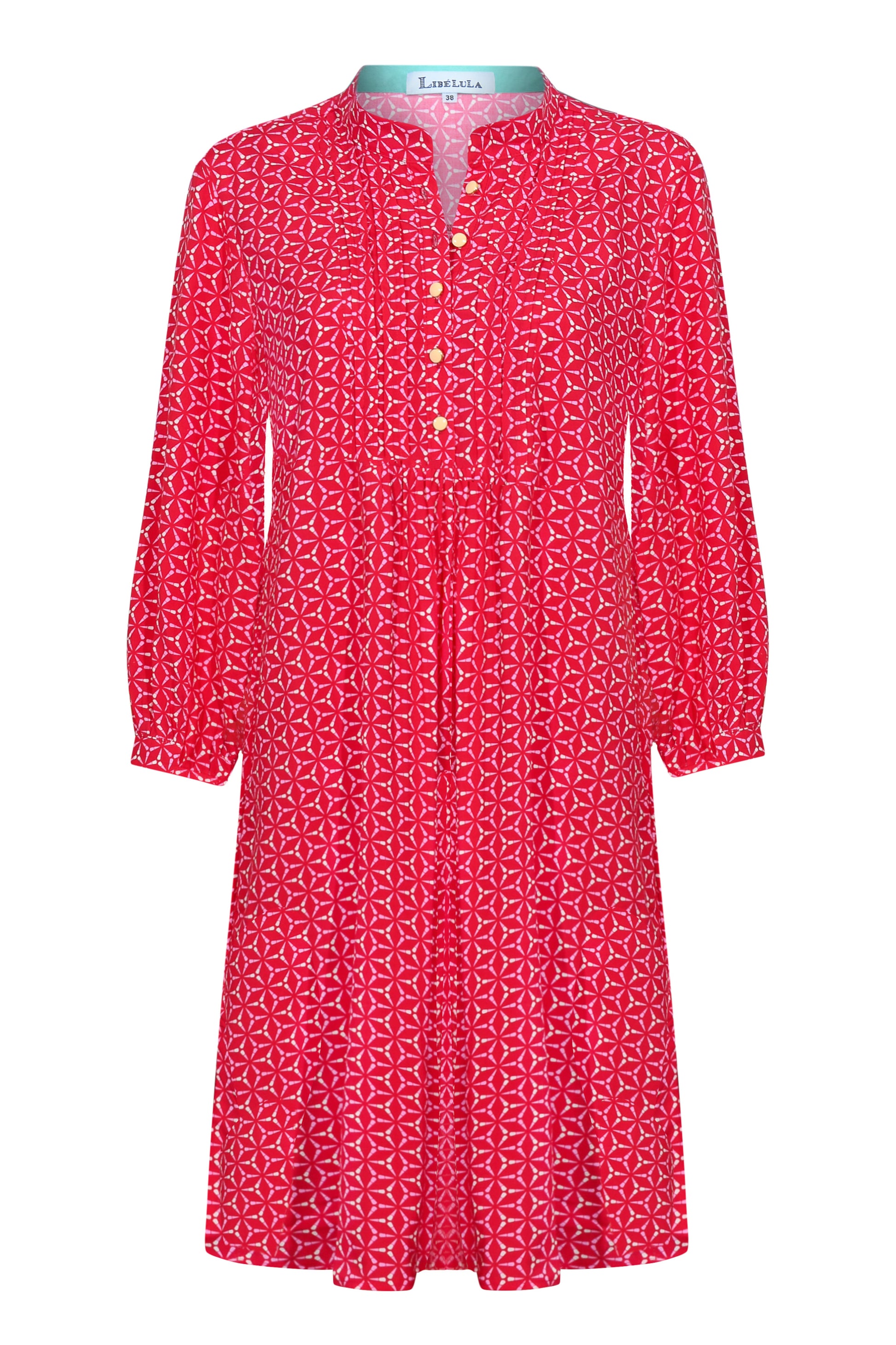 Stylish, flattering and versatile, The Chloe style can be worn in so many ways for so many occasions. This stunning version in our super soft rayon in the red spinning print is one of our favourite chloe dresses ever. So easy to wear everyday, It features the classic pin tuck detail to the front and 3/4 length sleeves. An easy piece to wear over your favourite trousers or jeans or just on it's own.