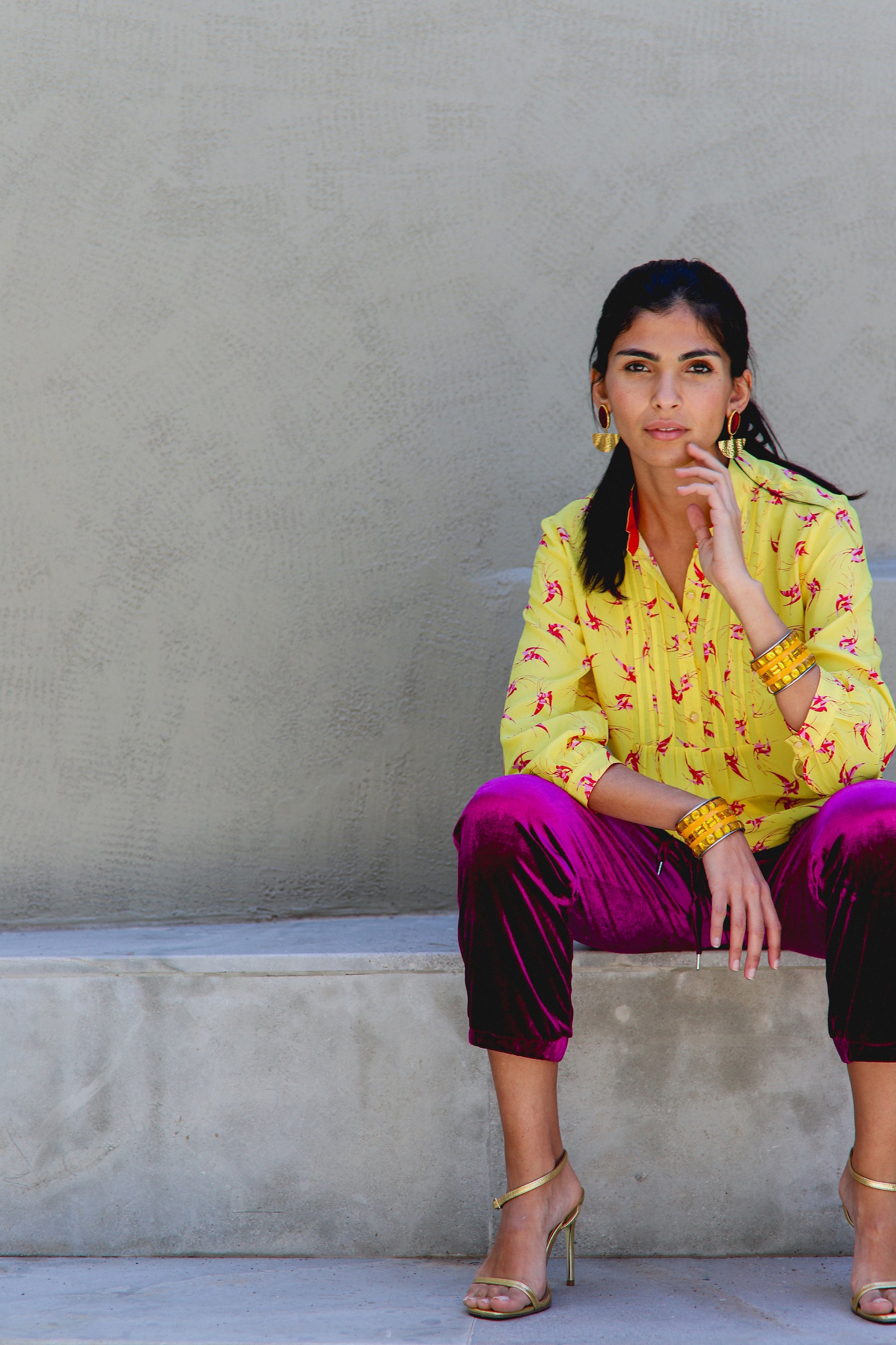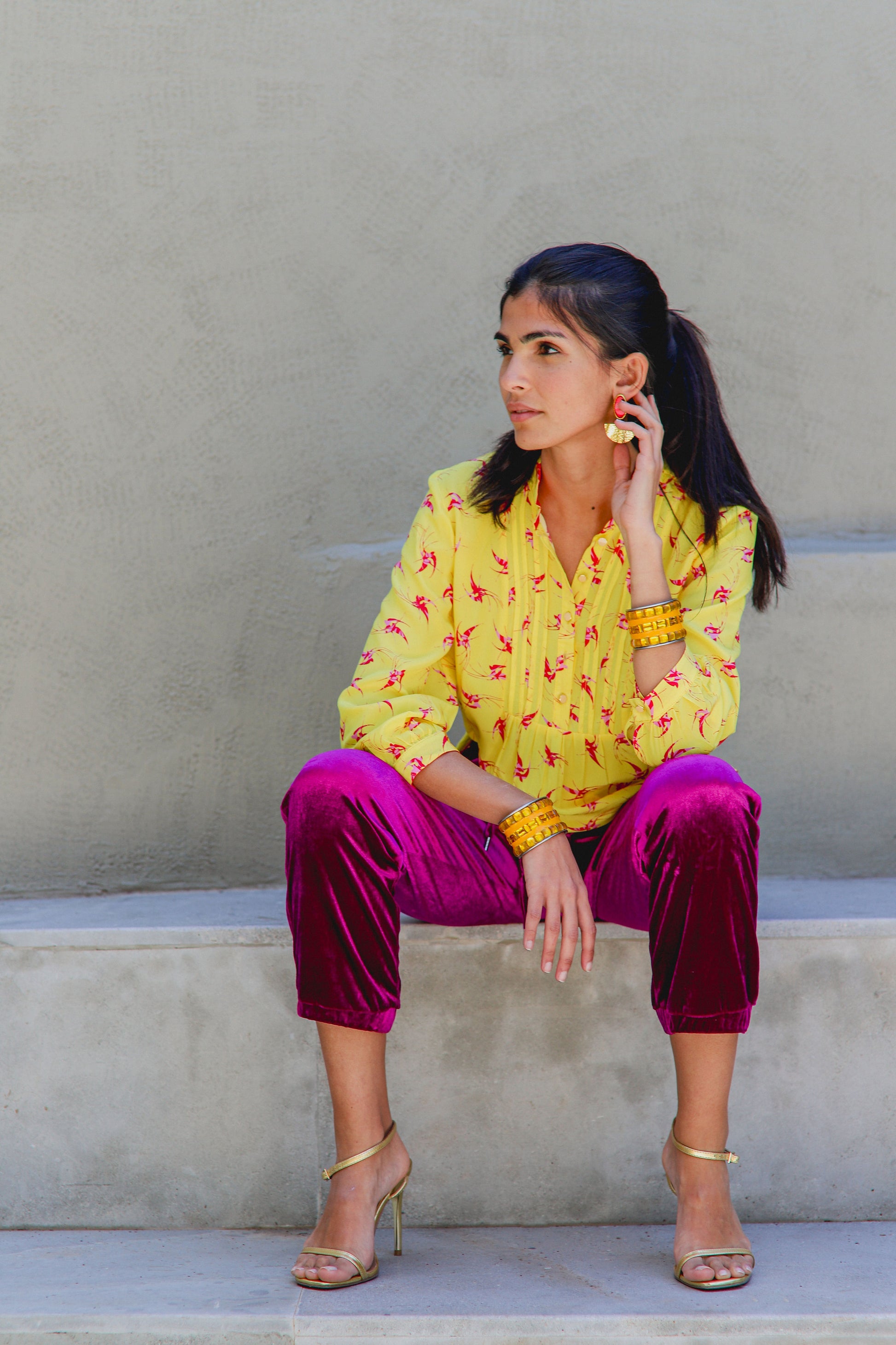 Meet our most-loved bestseller - now in the most joyful colourway yet. The Delphine Top in Yellow Lovebirds Print is crafted from luxurious 100% silk crepe, featuring our signature hand-painted lovebirds print in a vibrant, sun-kissed yellow that turns heads for all the right reasons.