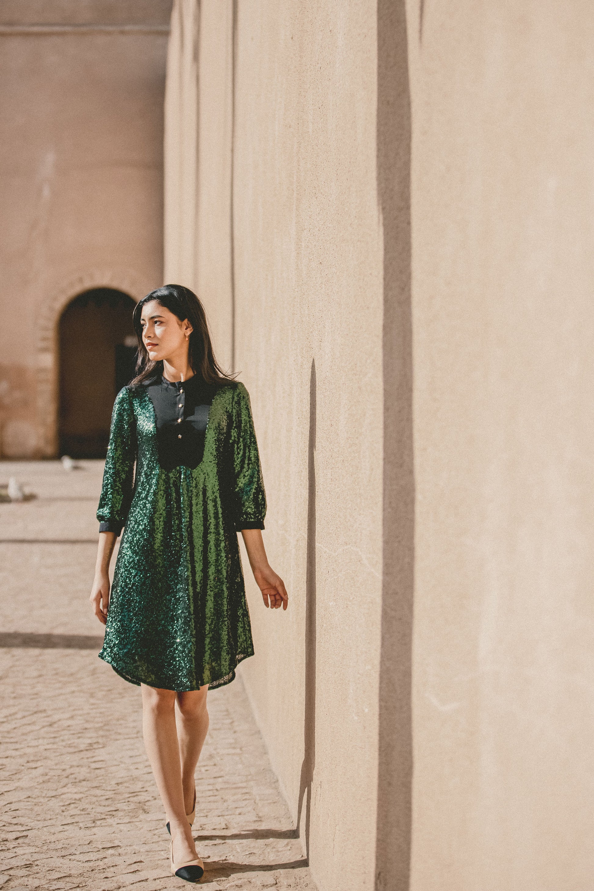 GOODIE TUNIC | BOTTLE GREEN SEQUINS
