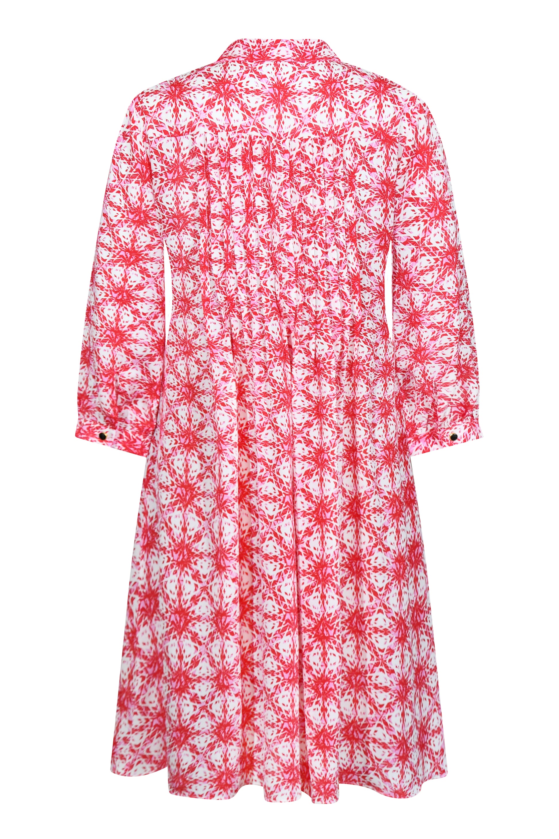 This Isla Shirt Dress comes in tour stunning startrack printed silk georgette in red and pink. It's perfect to wear over jeans or just on its own. A real winner for this season, and it features a shirt collar and pin tucked details to the front and back. A perfect trans seasonal piece that you will wear again and again, no matter the season.