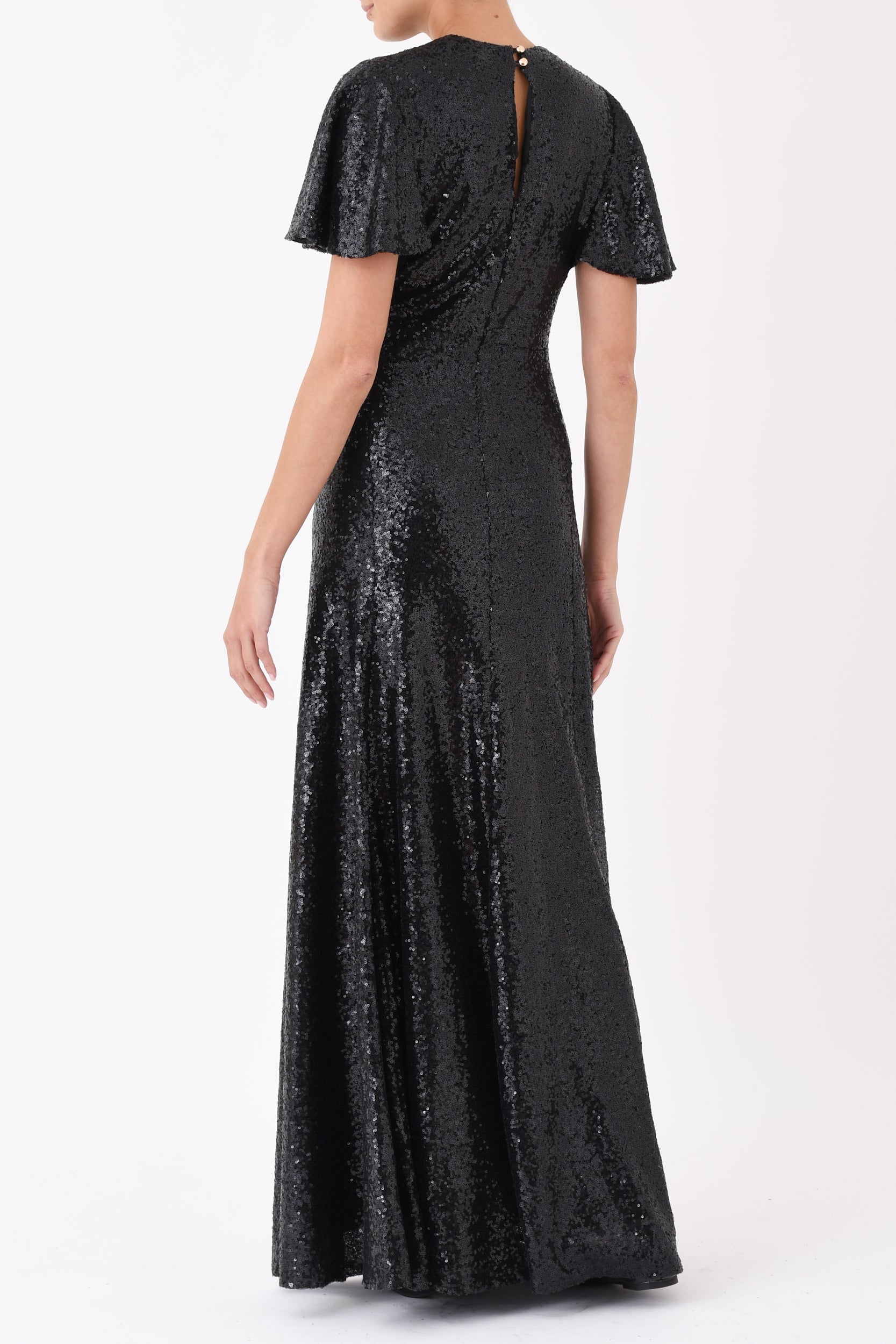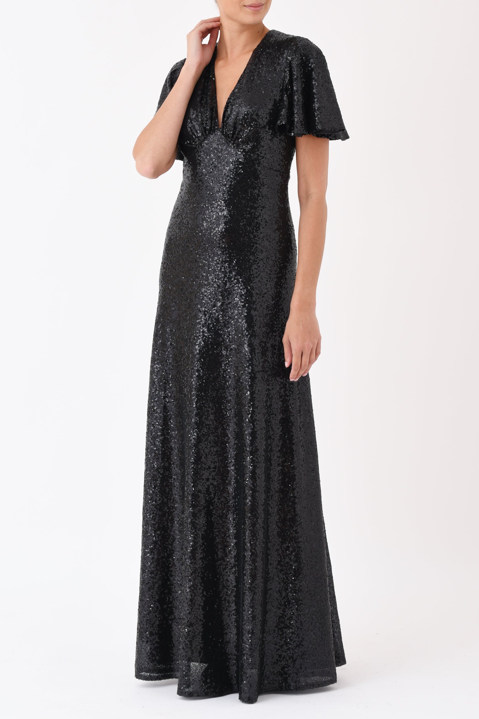 The Long TamMim Dress is a gorgeous fusion of two of our favourite shapes, the Long Tamara Dress and Long Mima Dresses. It has the beautifully fluid skirt of the Tamara, paired with the floaty sleeves of the Mima, giving it a fabulously exotic feel. This season we have made it in a fluid black sequinned fabric that is not only super flattering but feels and looks incredible as you move in it.