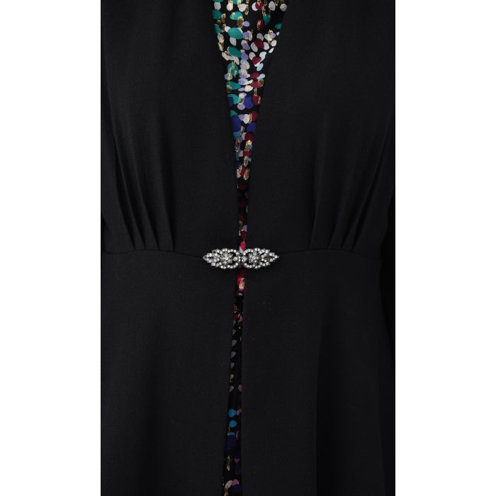 We have updated and improved our famous Dulwich Coat. We have lengthened this stunning evening coat so it can be worn over dresses that come below the knee, we have narrowed the shoulders a little and made the waist a bit more generous...we think it now cannot not be more perfect! Customers have suggested in the past that we make it in a wool crepe and here you are - it has just landed in a soft wool crepe that is fluid and hangs perfectly. And lined in a Black silk satin it features a classic vintage inspired brooch fastening. Elegant and sophisticated, wear this to all your formal occasions but equally great to dress up for a smart/casual evenings too.
