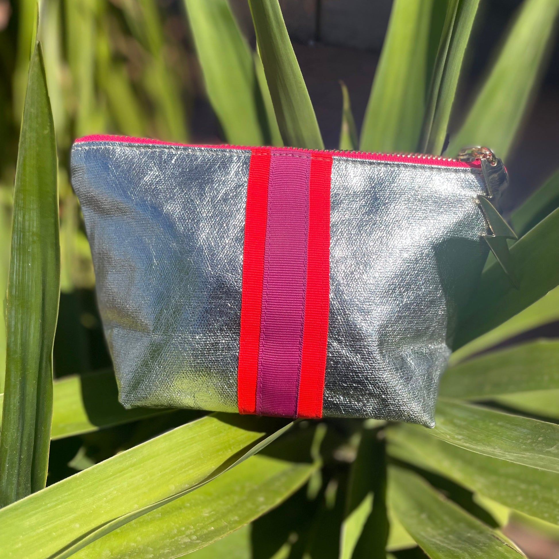 In a lustrous silver fabric and gorgeous stripe, this is a super popular bag - ideal for the D-I-S-C-O!