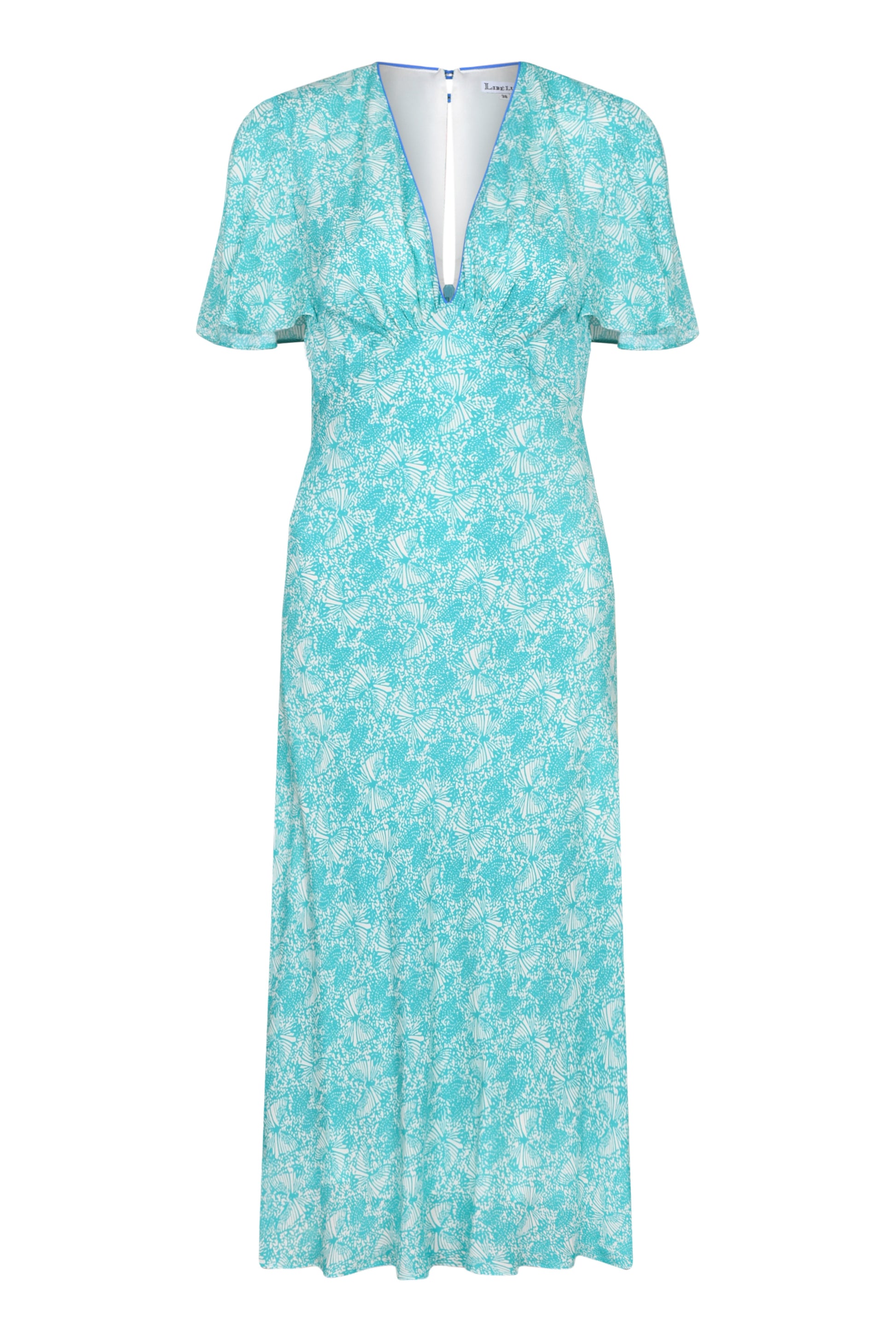 The TamMim Dress is a bestseller at Libelula so it is back the Flutter Printed silk georgette in Aqua.