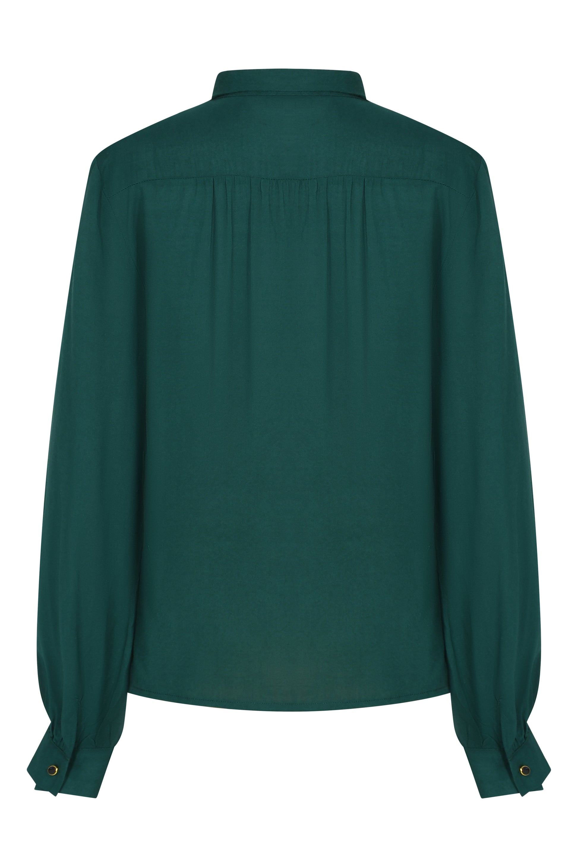 TIE NECK BLOUSE | BOTTLE GREEN RAYON